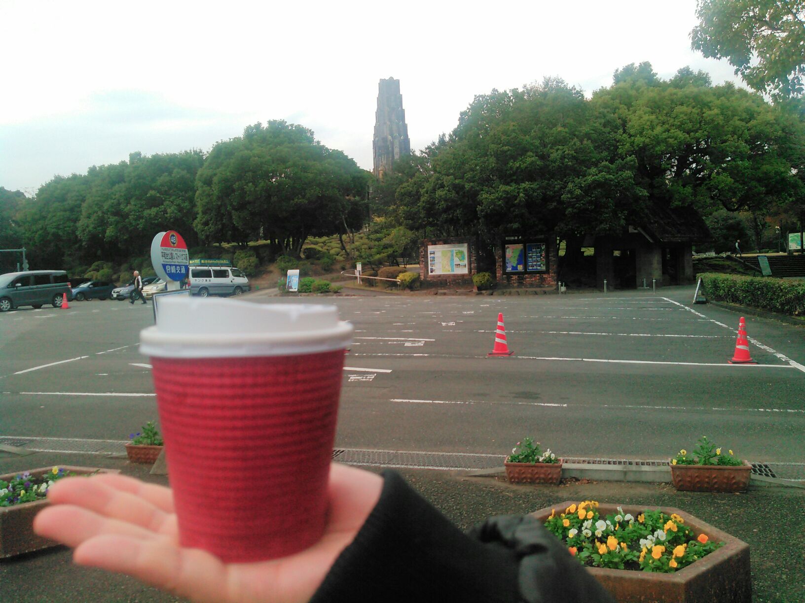 最後に玄米コーヒーと平和台公園でパシャリ